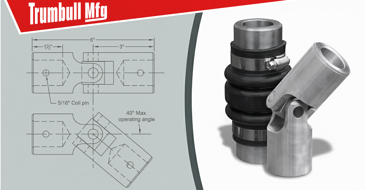 Recommended maximum torque is 250 ft-lb. For applications with higher torque requirements, consult Trumbull. Maximum operating angle is 40 degrees.Universal Joints are bored to accept 1-1/4″ rod, but other bore sizes are available upon request.